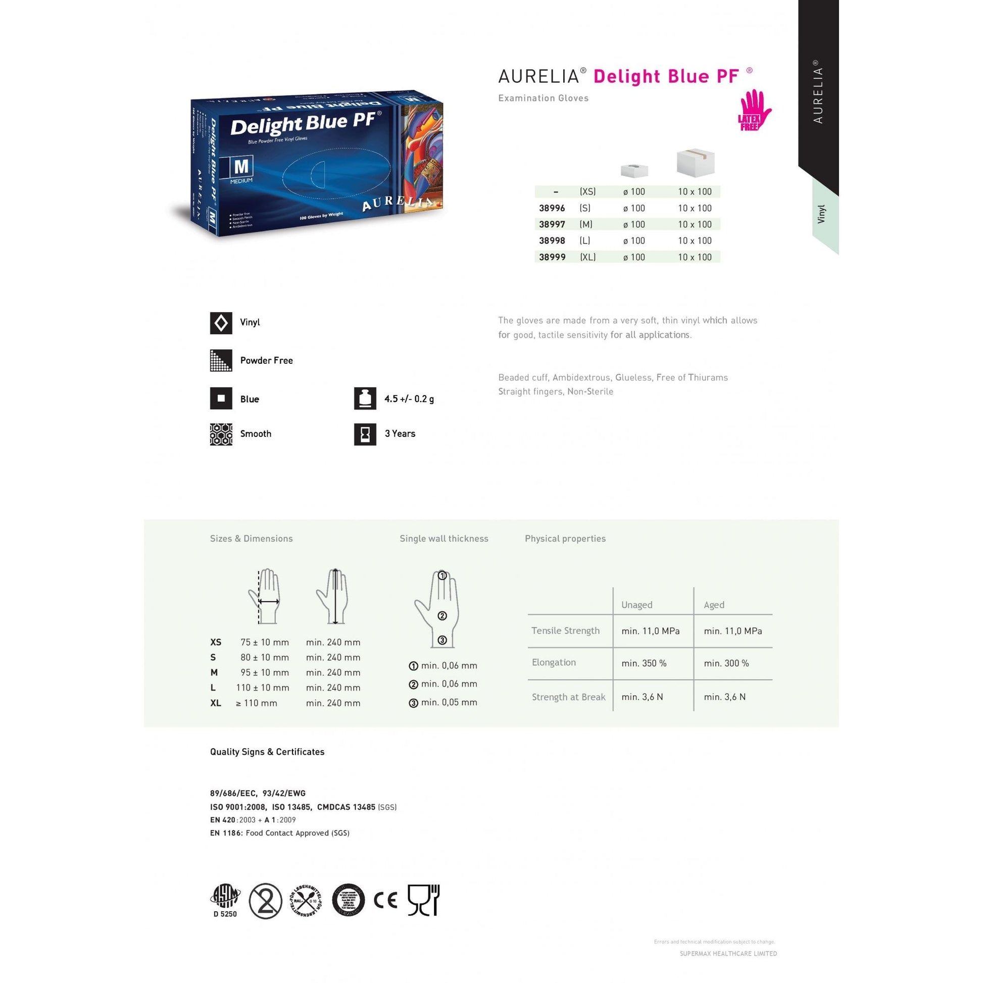 Aurelia Gloves - Blue Vinyl - Powder Free